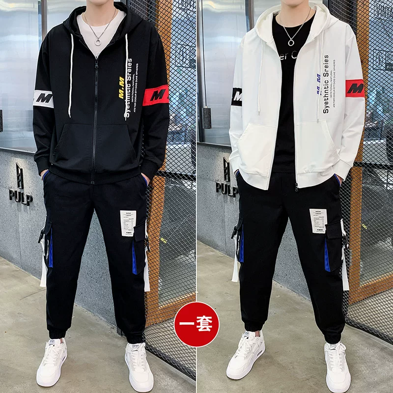 Nam giới mùa xuân và mùa thu 2020 phiên bản Hàn Quốc của áo nỉ thể thao giản dị ba mảnh phù hợp với tinh thần chàng trai phù hợp với xu hướng nam - Bộ đồ