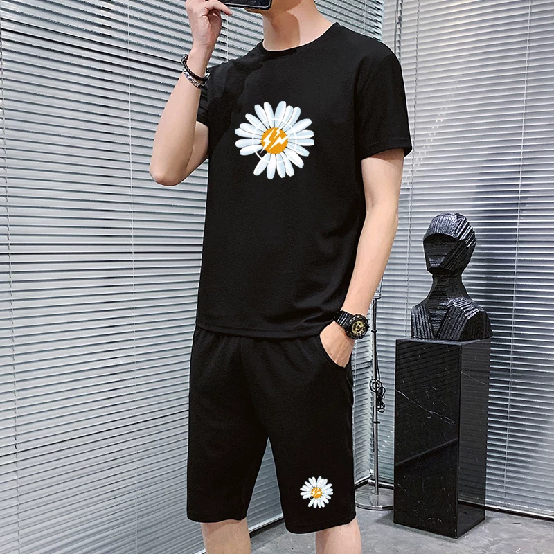 Mùa hè nam giới ngắn tay áo phông quần soóc xu hướng thanh niên sinh viên thể thao quần phù hợp với hai mảnh từ bi - Bộ đồ
