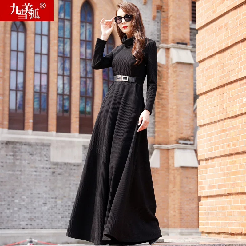 Đầu thu năm 2021 phụ nữ Âu Mỹ mới tính khí cao đến mắt cá chân lau sàn siêu dài váy dài - Váy dài