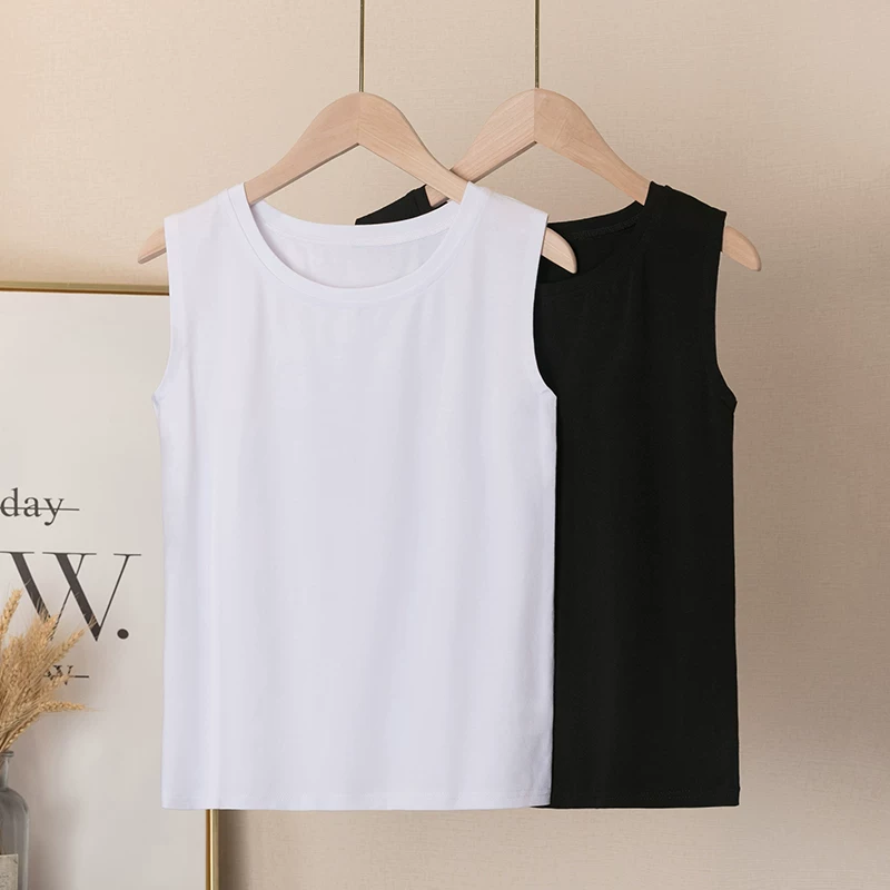 Phiên bản Hàn Quốc của áo vest cotton màu trơn của phụ nữ mùa hè mặc áo thun không tay mỏng và rộng rãi phía dưới áo sơ mi chéo dây đeo trên đầu - Áo ba lỗ