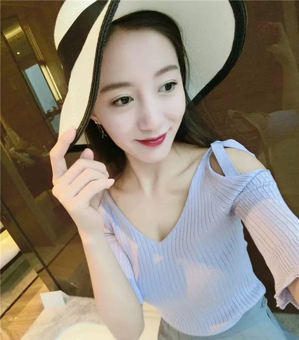 Áo len nữ Ayilian từ vai mùa hè 2020 mùa hè mới hoang dã áo sơ mi nữ tính khí tuổi mỏng áo len mỏng - Vòng cổ áo len