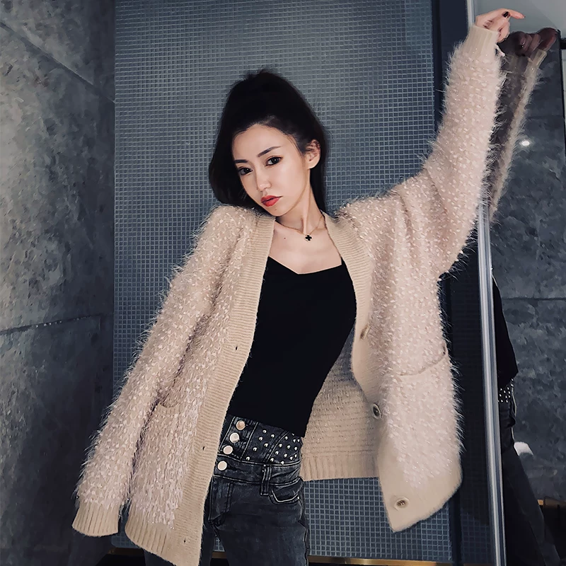 Áo khoác len lông cừu nữ 2019 thu đông phổ biến mới phong cách Hàn Quốc rộng nhỏ lông nhung hoang dã dày - Áo len lót đôi