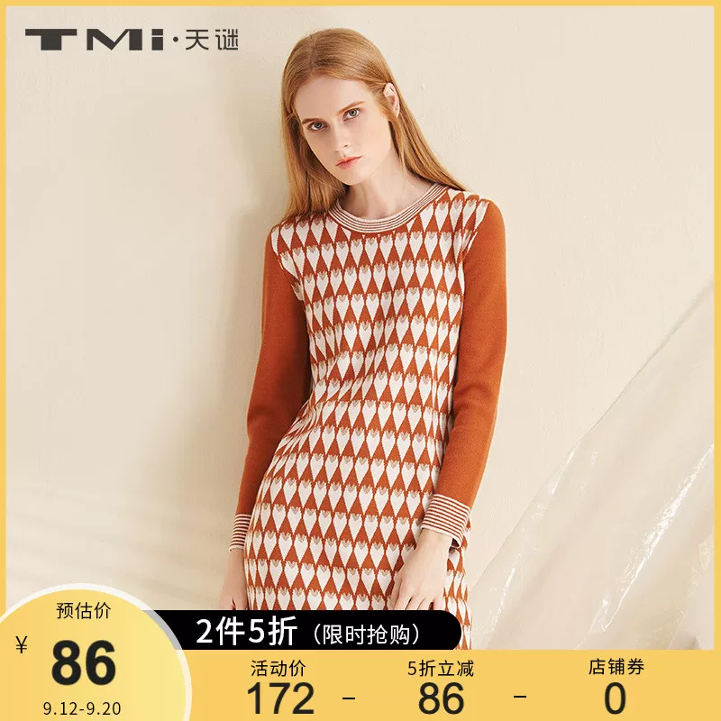 TMi Tian Mi phụ nữ mùa thu và mùa đông sản phẩm mới cổ tròn dài tay kẻ sọc áo len tính khí váy 183115 - Sản phẩm HOT