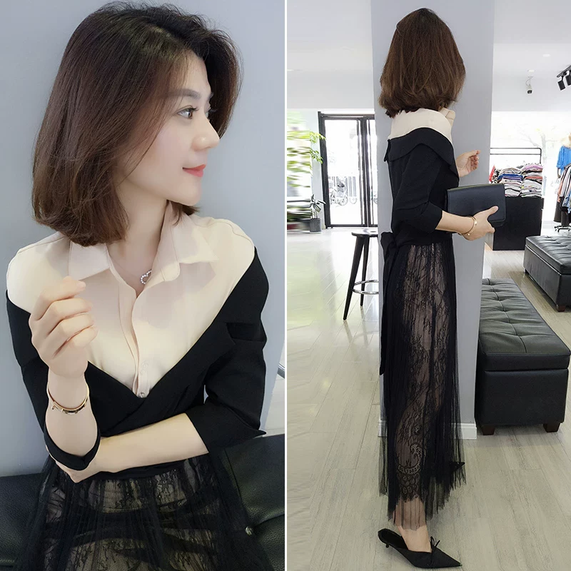 Áo khoác khí chất nửa váy đen hai mảnh phù hợp với thời trang ga châu Âu 2021 quần áo phụ nữ mùa xuân và mùa thu mới Xu hướng châu Âu - Bộ đồ