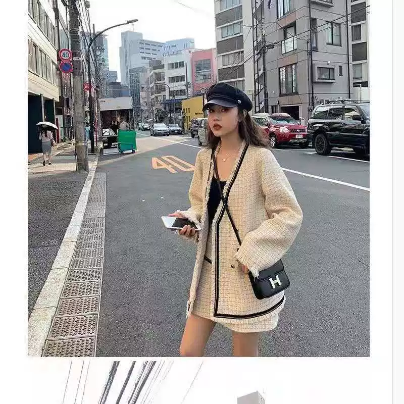 Em gái hoàng gia khí chất áo khoác và váy ngắn mỏng hai dây thời trang ga âu thu đông 2021 hàng mới nữ châu âu - Bộ đồ