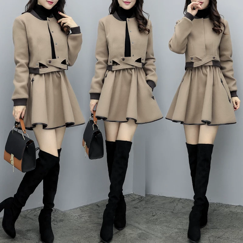 Phụ nữ mới mùa thu và mùa đông 2021 váy hai mảnh len áo khoác nửa dài váy dài váy thời trang giản dị phù hợp với phụ nữ váy - Bộ đồ