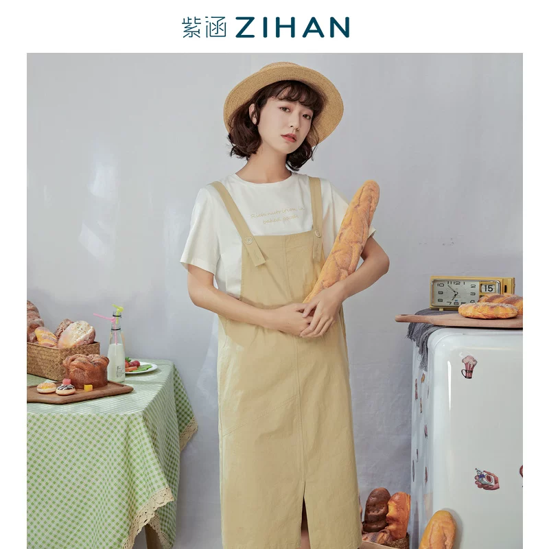 Mùa hè 2020 người đàn ông nhỏ tuổi phù hợp với tuổi trẻ nữ giản dị giữa áo thun dài ngọt ngào váy denim hai mảnh phù hợp - Bộ đồ