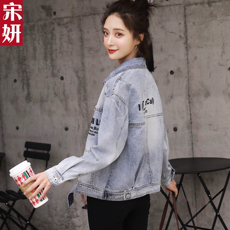 Mùa thu 2019 áo khoác denim mới dành cho nữ ngắn phần áo khoác bf phong cách Hàn Quốc phong cách Hong Kong giản dị hàng đầu phong cách đại học - Áo khoác ngắn