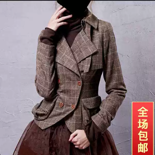 Phụ nữ OL đi lại phong cách văn học retro phong cách rắn mùa xuân và mùa thu với váy ngắn - Áo khoác ngắn