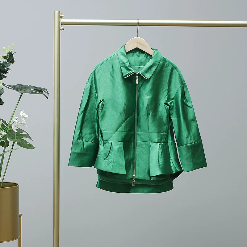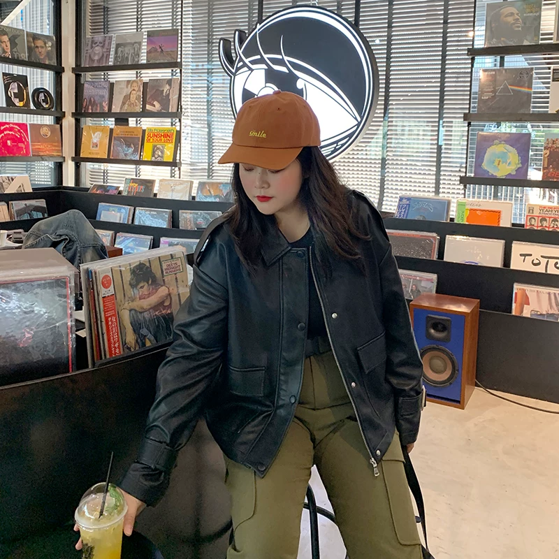 Kích thước lớn của phụ nữ béo mm phong cách nước ngoài là áo khoác da mỏng mùa xuân 2020 mới thả lỏng áo khoác hoang dã ngắn - Áo khoác ngắn