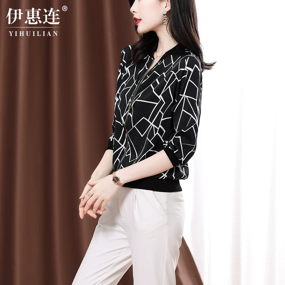 Áo khoác lụa bóng chày in lụa nặng Hàng Châu 2020 mùa hè mới của phụ nữ sọc lụa satin hàng đầu - Áo khoác ngắn
