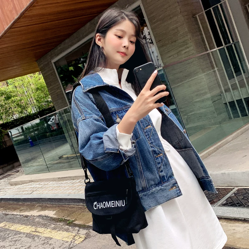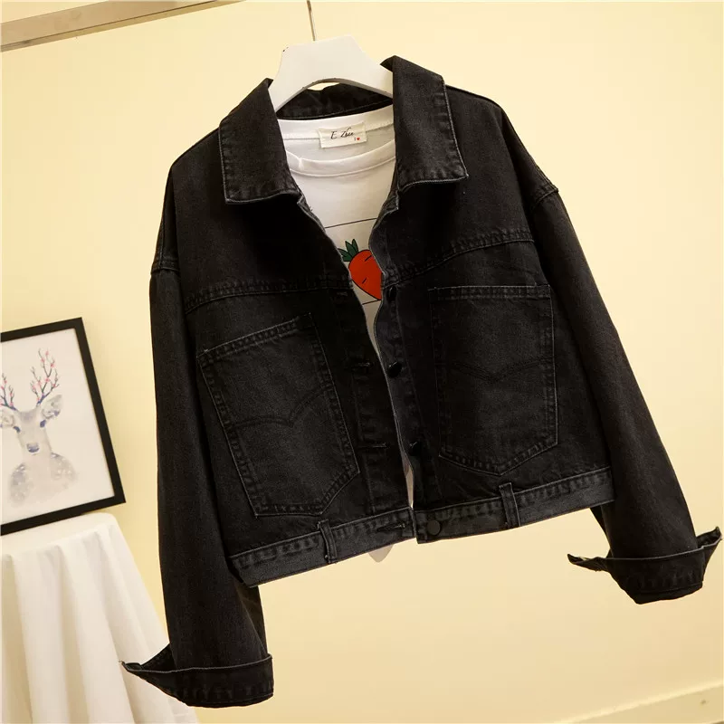 Áo khoác denim mới 2019 nữ ngắn phiên bản Hàn Quốc lỏng lẻo mỏng phổ biến màu đỏ hoang dã đen giản dị hàng đầu - Áo khoác ngắn