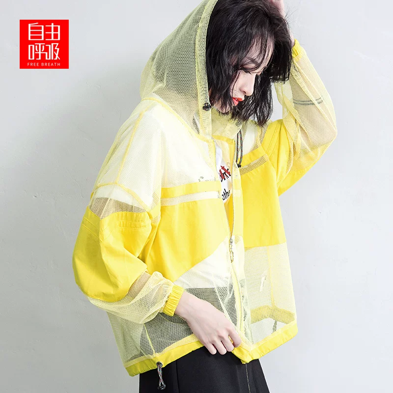 Hít thở miễn phí 2020 Phụ nữ mới mùa hè In áo len ngắn Áo khoác nữ Hàn Quốc Tide dài tay lỏng lẻo - Áo khoác ngắn