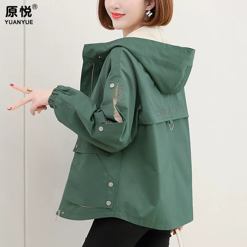 Áo khoác nữ trùm đầu ngắn mùa xuân và mùa thu 2020 Phiên bản mới của Hàn Quốc của áo gió rộng rãi cho phụ nữ áo sơ mi dài tay hoang dã - Áo khoác ngắn
