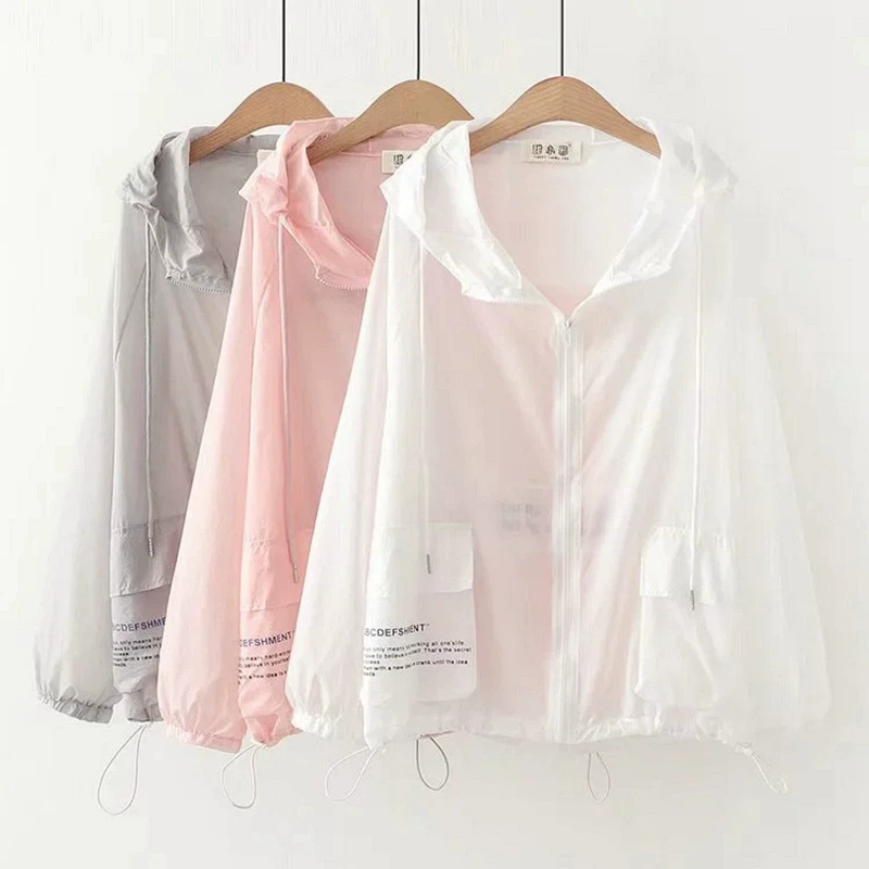 Văn học Nhật Bản và nghệ thuật nhỏ phim hoạt hình tươi chữ lỏng lẻo cỡ lớn áo khoác nữ ngắn tay áo dài Han Fan chống nắng quần áo mùa hè - Áo khoác ngắn