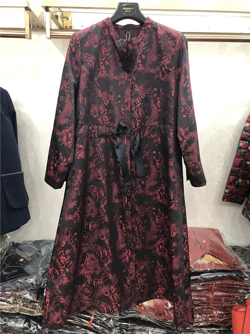 Bản gốc văn học vừa và dài áo len mỏng in áo khoác trench bên ngoài 2019 mùa thu mới của phụ nữ cộng với size thủy triều - Trench Coat