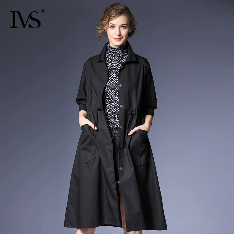 IVS2019 mùa thu mới dài tay nữ cộng với kích thước áo khoác giảm béo giản dị nữ lỏng lẻo tay áo bảy điểm mỏng - Trench Coat