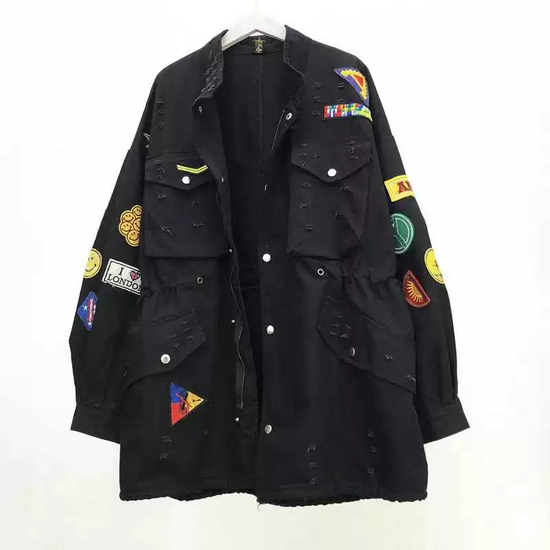 Aka Women 2020 Thu mới Áo trùm đầu denim Áo gió Retro Thêu Thời trang giản dị Áo khoác lớn - Trench Coat