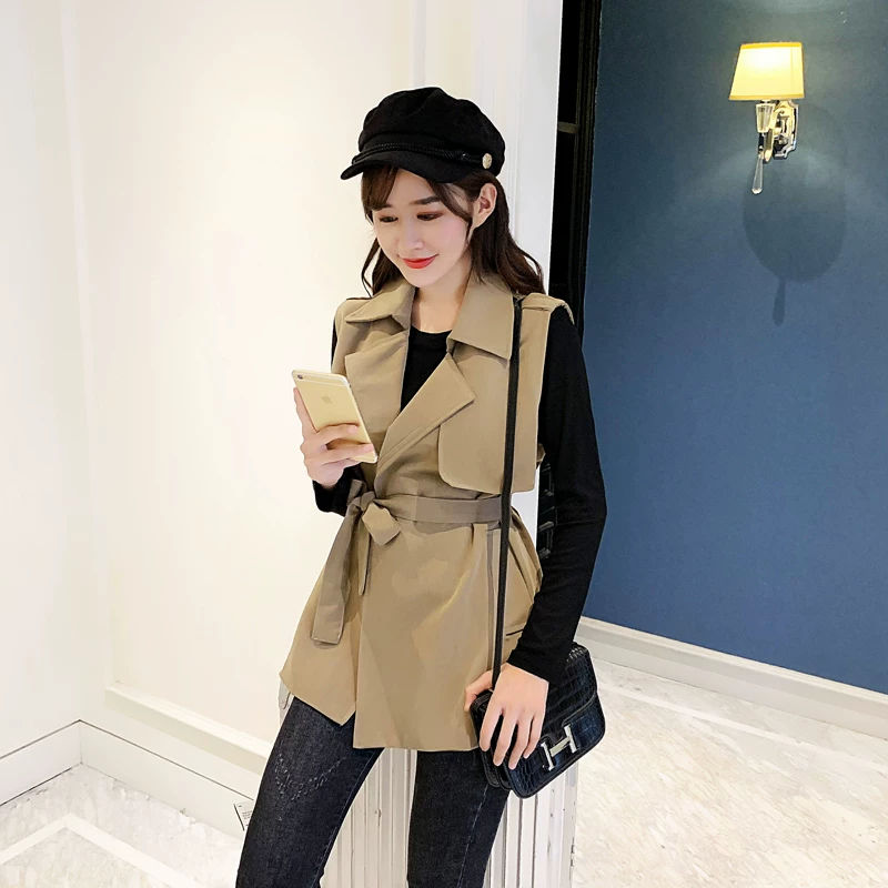 Mùa xuân mới 2020 thời trang nữ phiên bản Hàn Quốc của áo khoác mỏng áo vest hai dây set quần eo trench nữ ngắn - Trench Coat