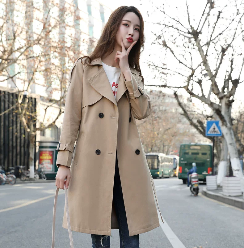 Quần áo nữ phong cách Nhật Bản mát mẻ vào mùa xuân 2020 làn sóng thời trang mới ở giữa và dài mẫu áo khoác gió phổ biến hoang dã phụ nữ - Trench Coat