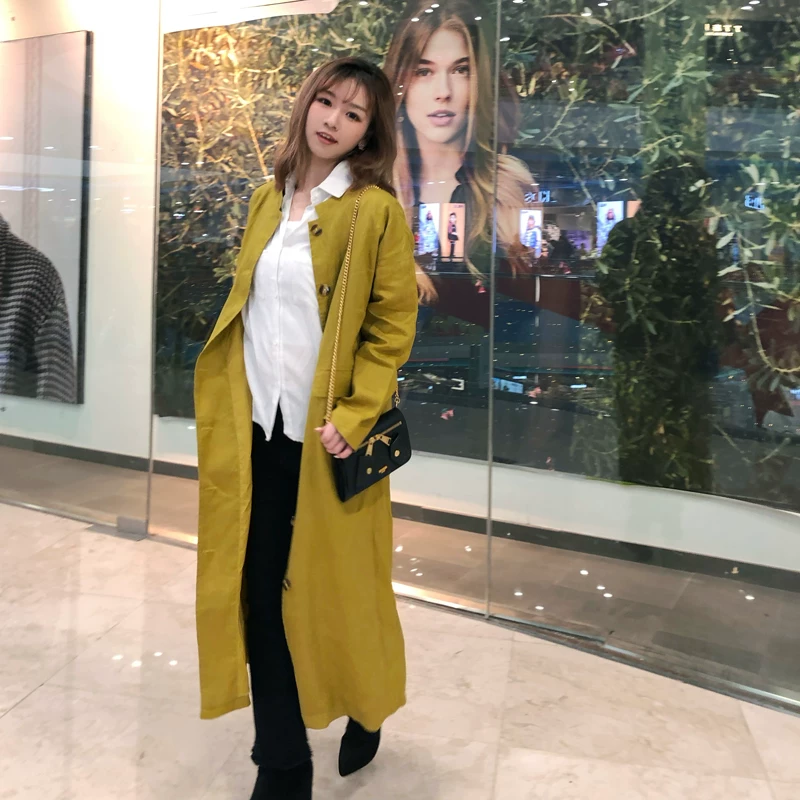 2021 áo gió mới mùa thu phụ nữ tính khí thời trang dài qua đầu gối lỏng lẻo retro giản dị mùa xuân và mùa thu áo khoác dài trung thu quần áo phụ nữ - Trench Coat
