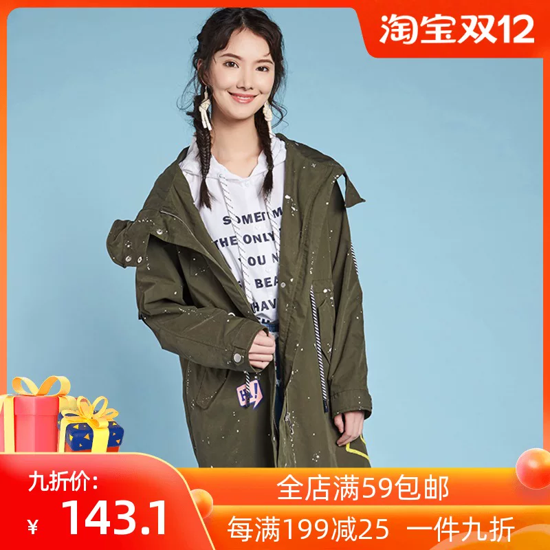 Igers new mùa xuân quần áo phụ nữ vượt thời gian bình thường lỏng lẻo áo khoác gió dài giữa dài có mũ trùm đầu - Trench Coat