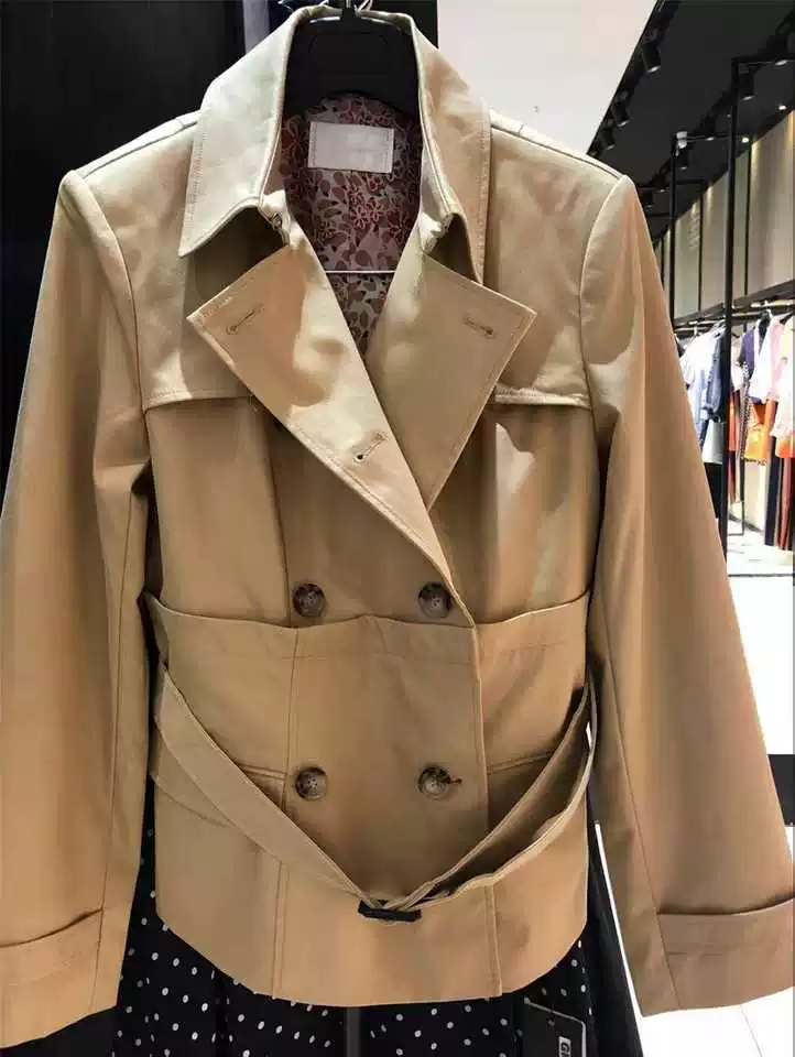 2021 sản phẩm mới quần áo phụ nữ màu mới phiên bản châu Âu và Mỹ đẹp và kết cấu vải áo khoác gió ngắn - Trench Coat