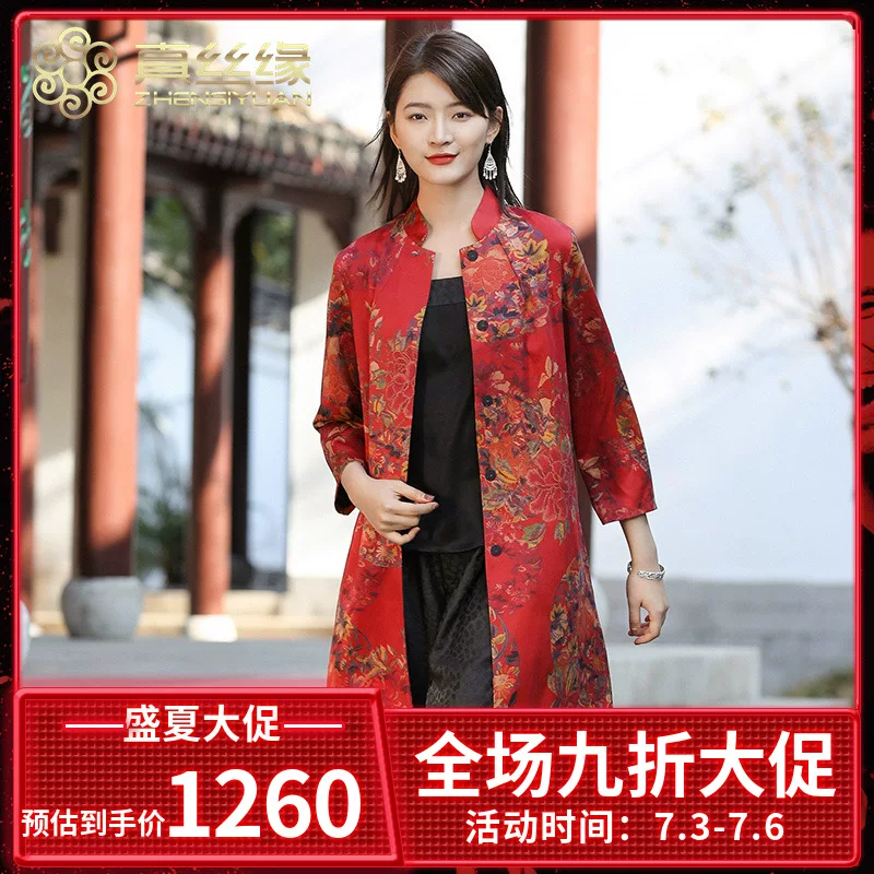 Mùa xuân và mùa hè lụa thơm sợi mây lỏng kích thước lớn áo gió của phụ nữ thời trang 3/4 tay áo giữa - Trench Coat