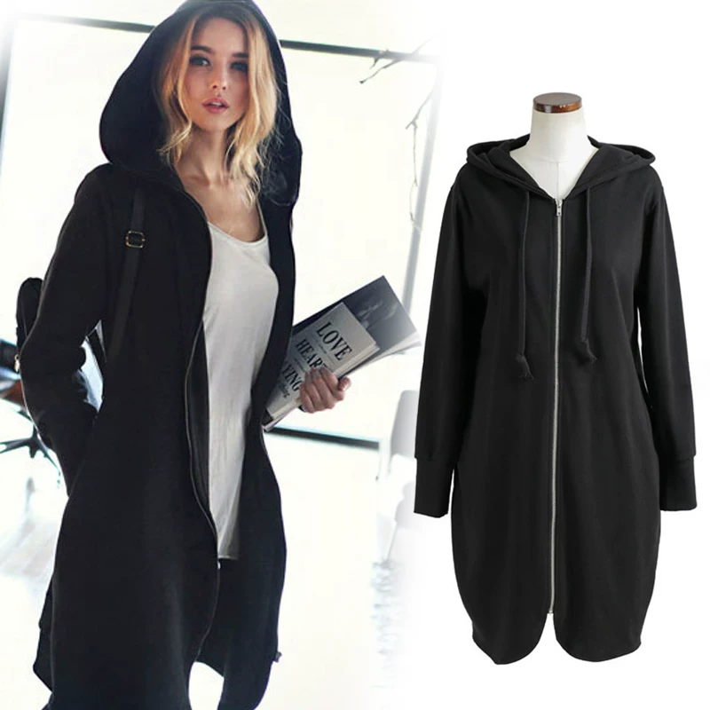 Phiên bản Hàn Quốc của Dongdaemun nữ áo len rộng dài giữa phụ nữ 2021 cộng với nhung đệm bf áo khoác gió có mũ trùm đầu lười biếng - Áo len