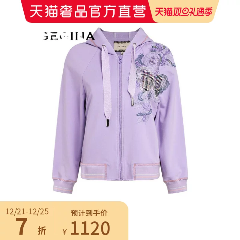 GEGINA dành cho nữ có mũ trùm đầu dài tay thêu ren Áo khoác dây kéo ngắn - Áo len