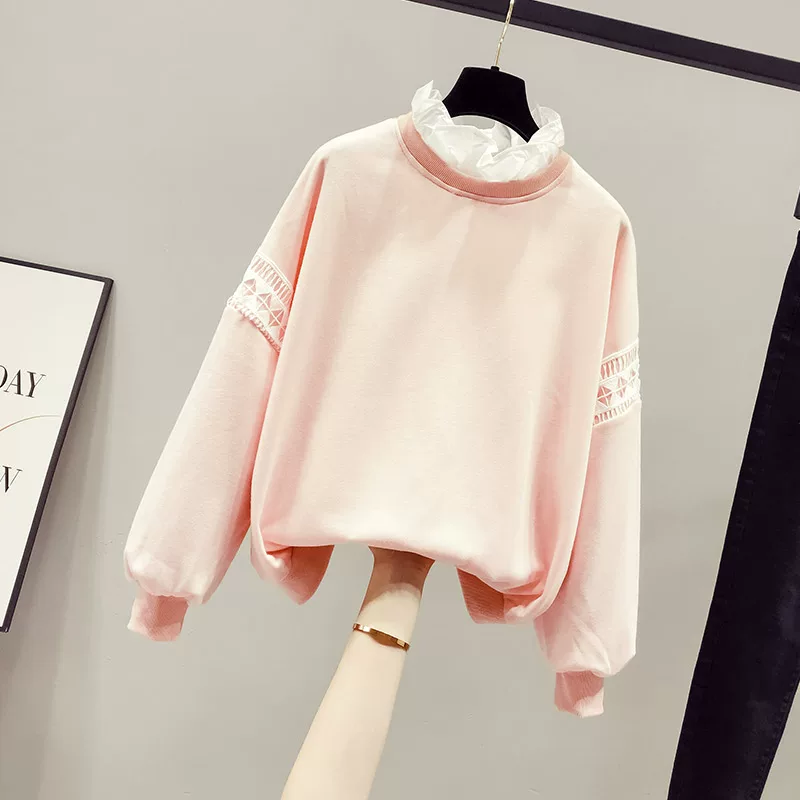 Áo len mỏng nữ cộng với size quần áo nữ 2019 mới lưới màu đỏ lỏng lẻo gió lười siêu lửa cộng với áo tăng mỡ - Áo len