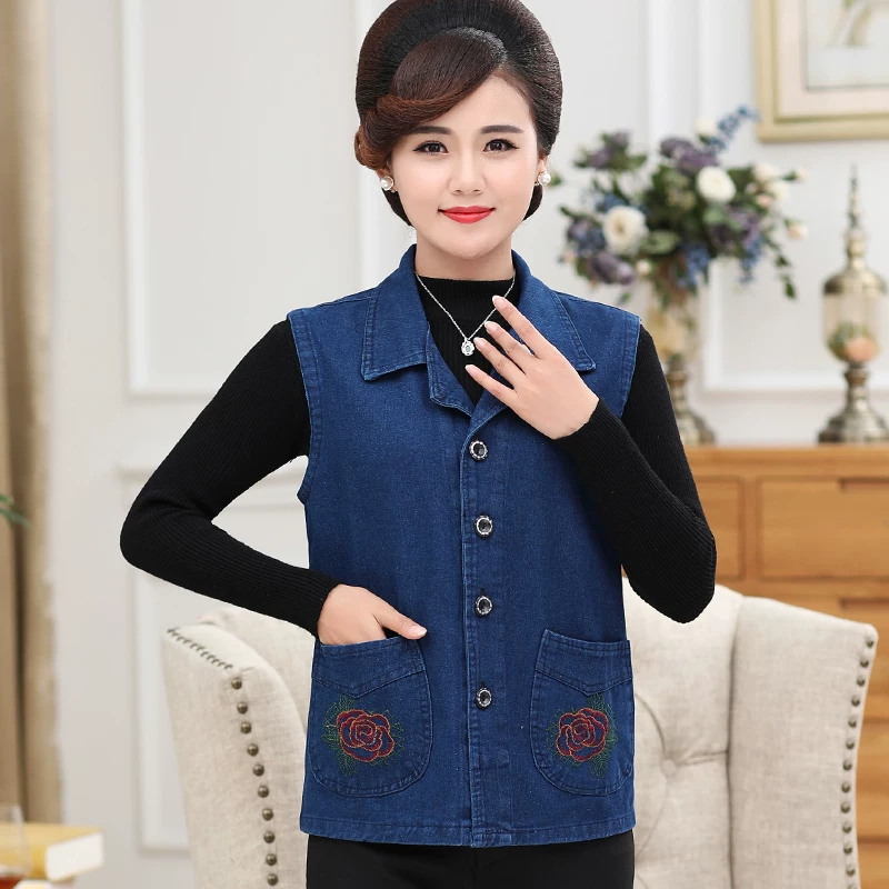 Quần áo trung niên và người già cotton mùa xuân và quần áo mùa thu mới của mẹ quần áo denim vest vest vest giản dị áo khoác cộng với phiên bản chất béo - Áo vest