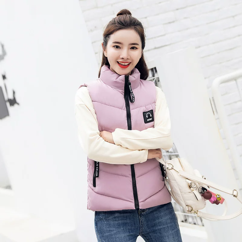 Mùa thu đông 2019 phiên bản Hàn Quốc mới của áo vest cotton nữ cổ rộng bỏ túi đứng cổ áo không tay áo khoác vest dày - Áo vest