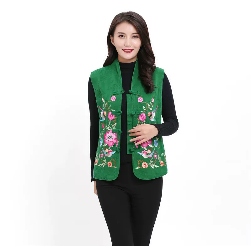 Phụ nữ mùa xuân và mùa thu 2019 phong cách dân tộc thêu hoa áo ghi lê ngắn không tay bà mẹ trung niên và cao tuổi mặc áo khoác cài nút cổ đứng - Áo vest