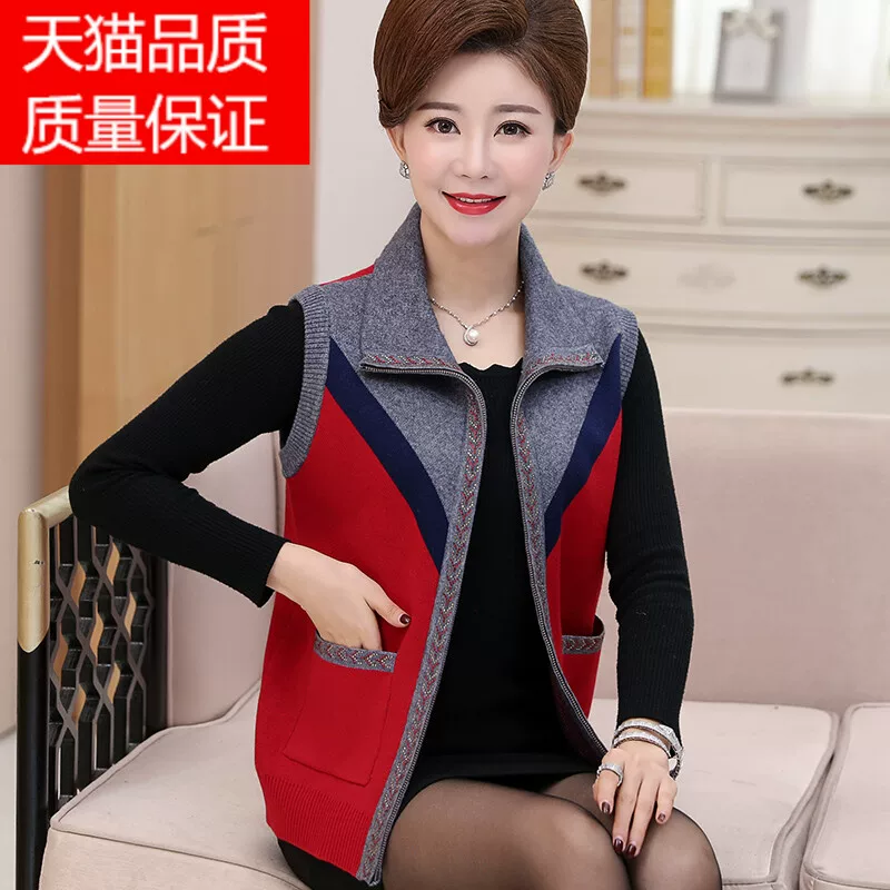 Phụ nữ trung niên và cao tuổi 2019 áo vest nữ mới 50 tuổi mẹ mùa xuân và áo len mùa thu áo len vest vest mặc - Áo vest