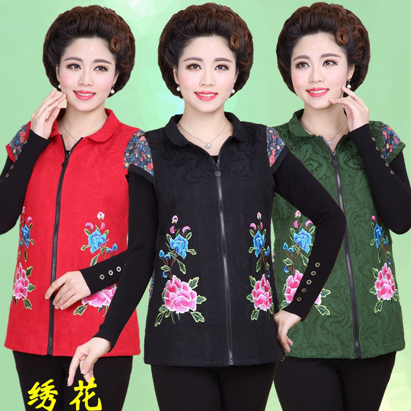 Áo vest nữ trung niên và cao tuổi Phụ nữ mùa thu đông mới cộng với váy nhung dày cho mẹ áo vest vest vest ấm áp - Áo vest