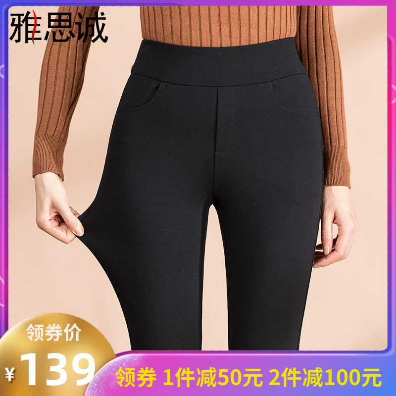 Mùa thu và mùa đông quần legging nhung đen mỏng, phụ nữ mặc quần bó sát ấm áp, quần cotton nữ chân, vớ, eo cao mỏng, size lớn - Quần tây thường