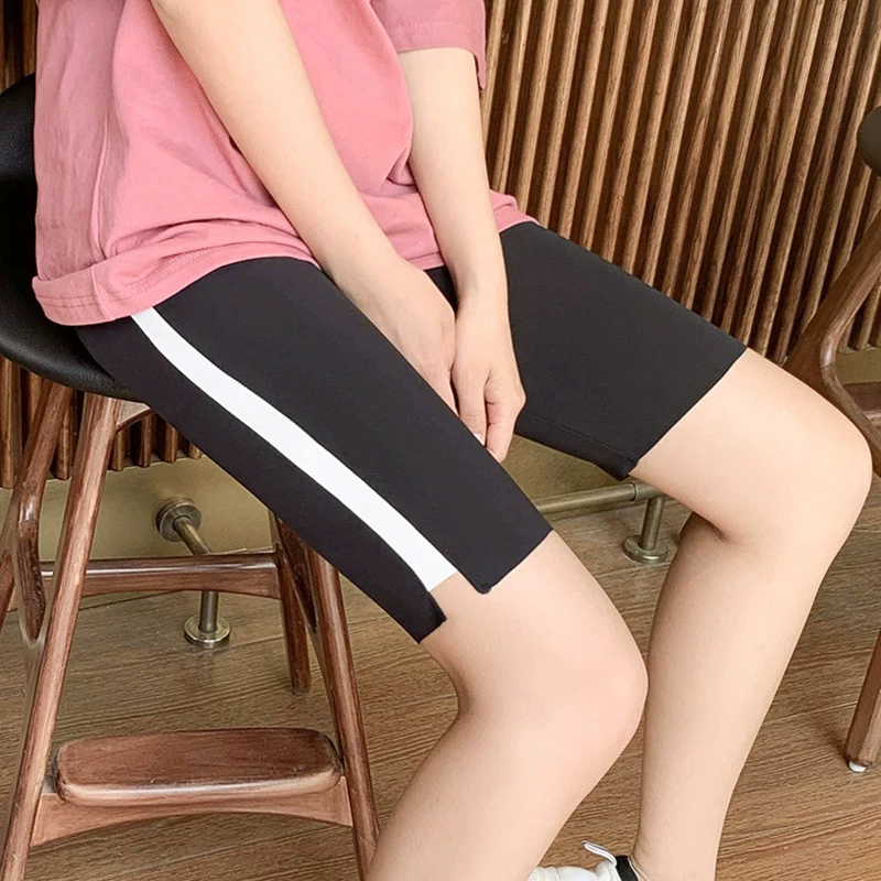 2020 mùa hè mỏng mật độ cao phương thức quần legging năm điểm chống chói bên ngoài mặc quần mỏng đi xe đạp sọc mỏng - Quần tây thường
