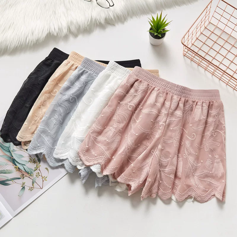 Quần chống chói an toàn cho phụ nữ mặc mùa hè mỏng phần ren thêu ba điểm chạm đáy lỏng lẻo đôi quần bảo hiểm - Quần tây thường