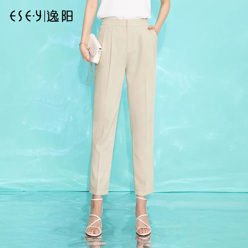 Yiyang 2020 hè mới quần harem chín điểm phụ nữ lỏng lẻo eo cao thường xuyên quần mỏng màu sáng 3880 - Quần Harem
