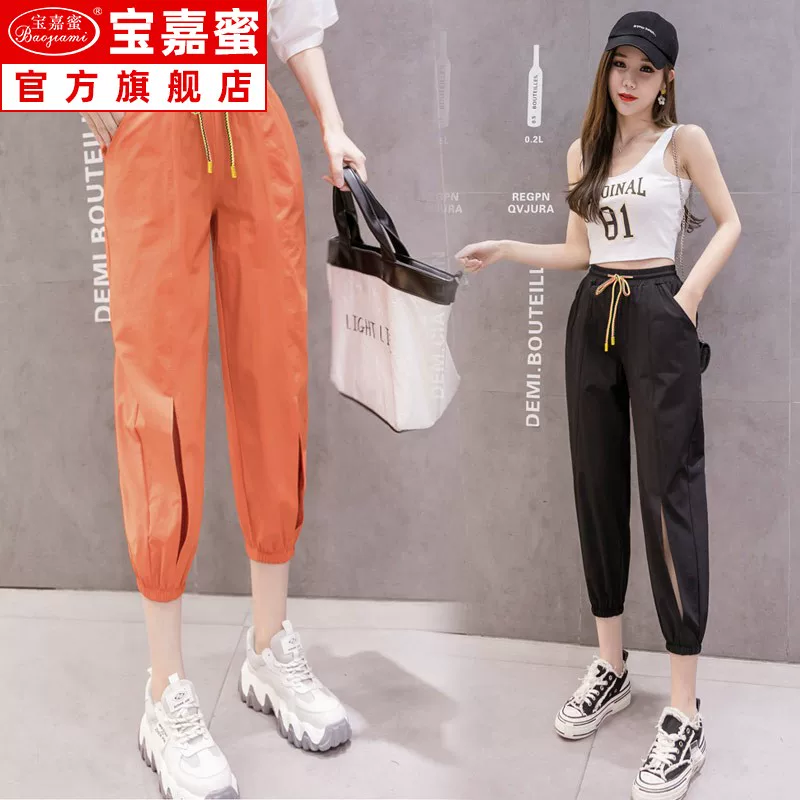 . Quần lụa băng mùa xuân và hè 2020 mới quần rộng chín điểm thể thao quần harem mỏng mỏng chẻ đôi - Quần Harem