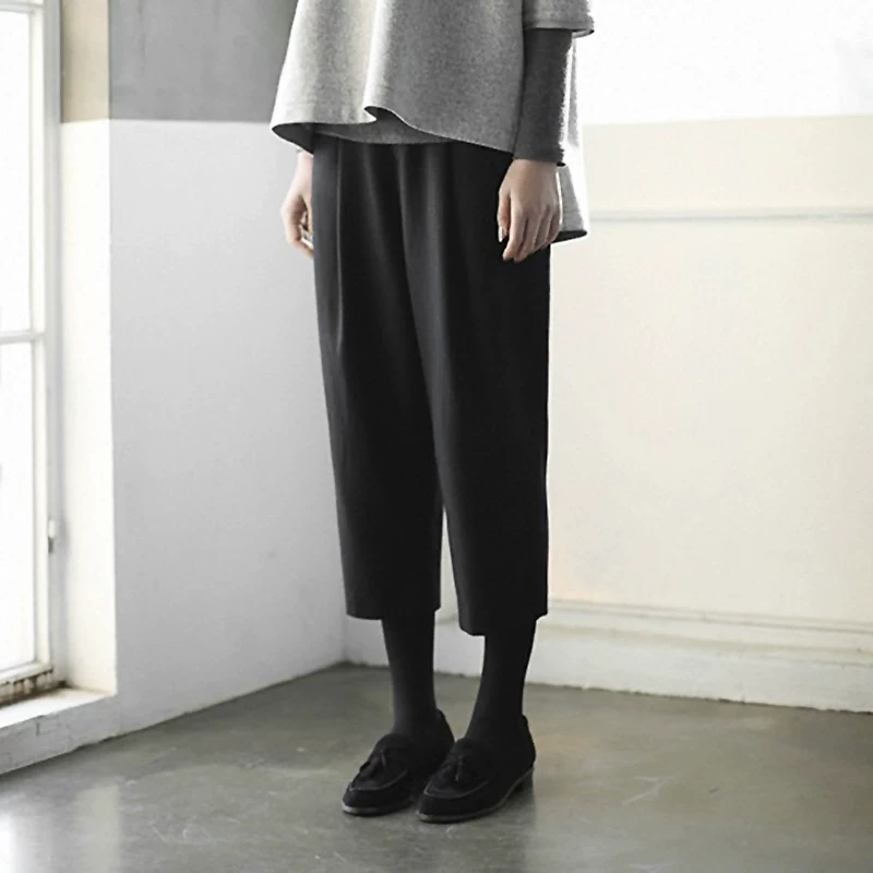Mùa thu và mùa đông Hàn Quốc phiên bản quần ống rộng bảy điểm len rộng quần harem nữ 9 điểm quần ống suông thẳng rộng chân hoang dã - Quần Harem