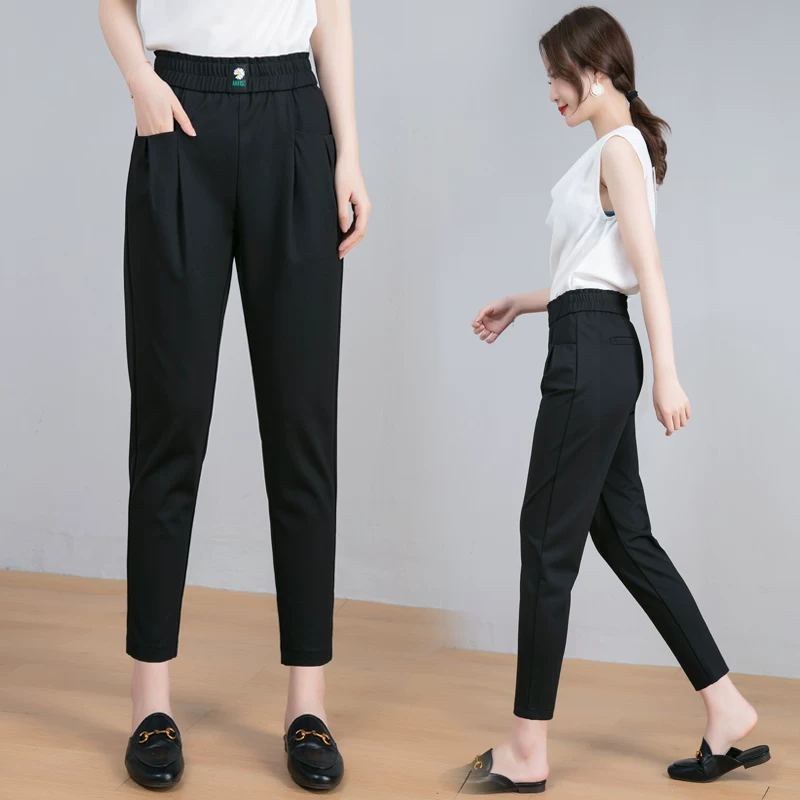Quần Harem nữ hè 2020 mới buông xõa thẳng giản dị eo cao chín điểm ống khói mỏng mảnh là bộ đồ mỏng chân - Khởi động cắt