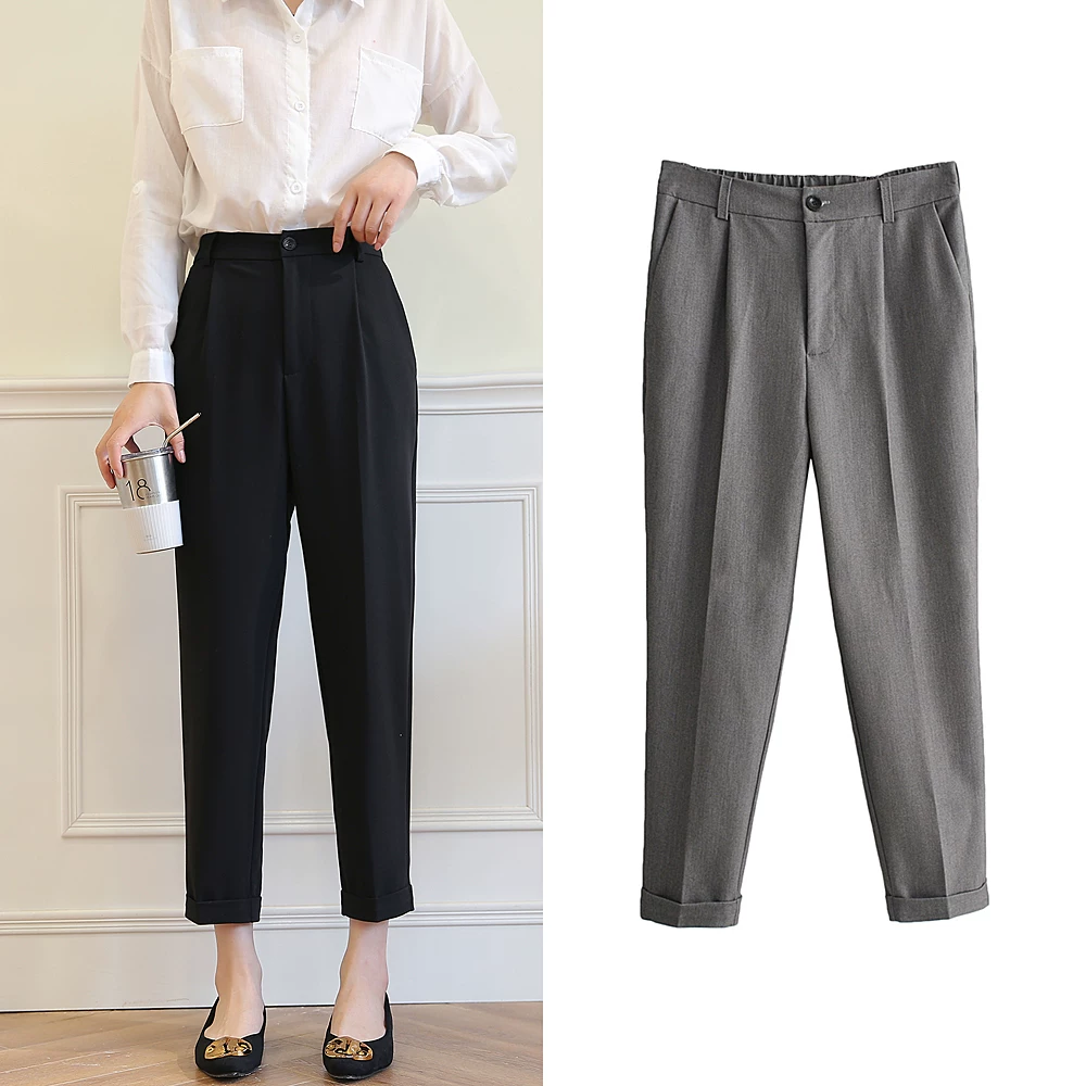 Mùa xuân và mùa hè 2020 Quần harem mới của Hàn Quốc Quần lưng cao thông thường Quần nữ chuyên nghiệp Quần đi làm là quần chân mỏng - Khởi động cắt