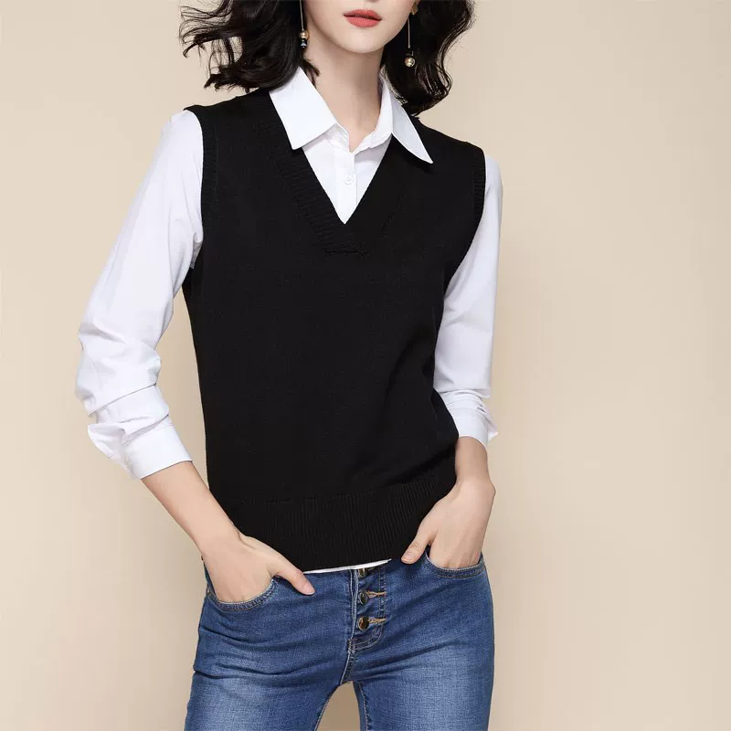 Mùa xuân 2020 mới giả áo hai dây nữ áo len dài tay lỏng lẻo Hàn Quốc áo len đáy mùa thu - Đan Cardigan