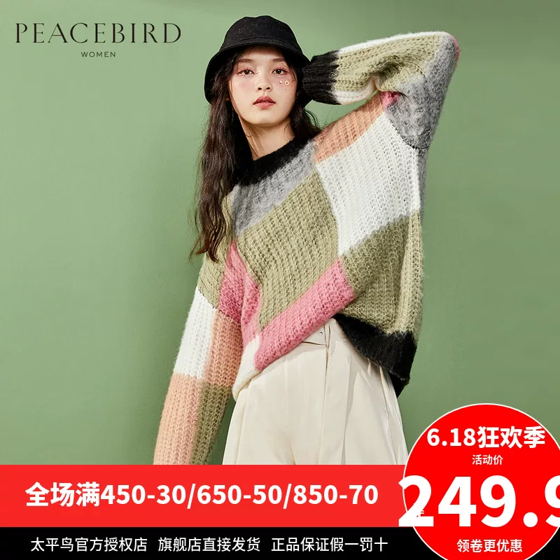 Áo len nữ lỏng lẻo của phụ nữ Peacebird 2020 Mùa xuân mới Mặc áo chui đầu thả tay áo dệt kim Phụ nữ - Áo / áo thun
