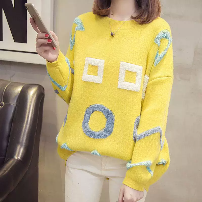 Cửa hàng quần áo Handu 2020 thư mới của phụ nữ lỏng lẻo lười biếng cổ tròn áo len áo len LZ9196 - Áo / áo thun