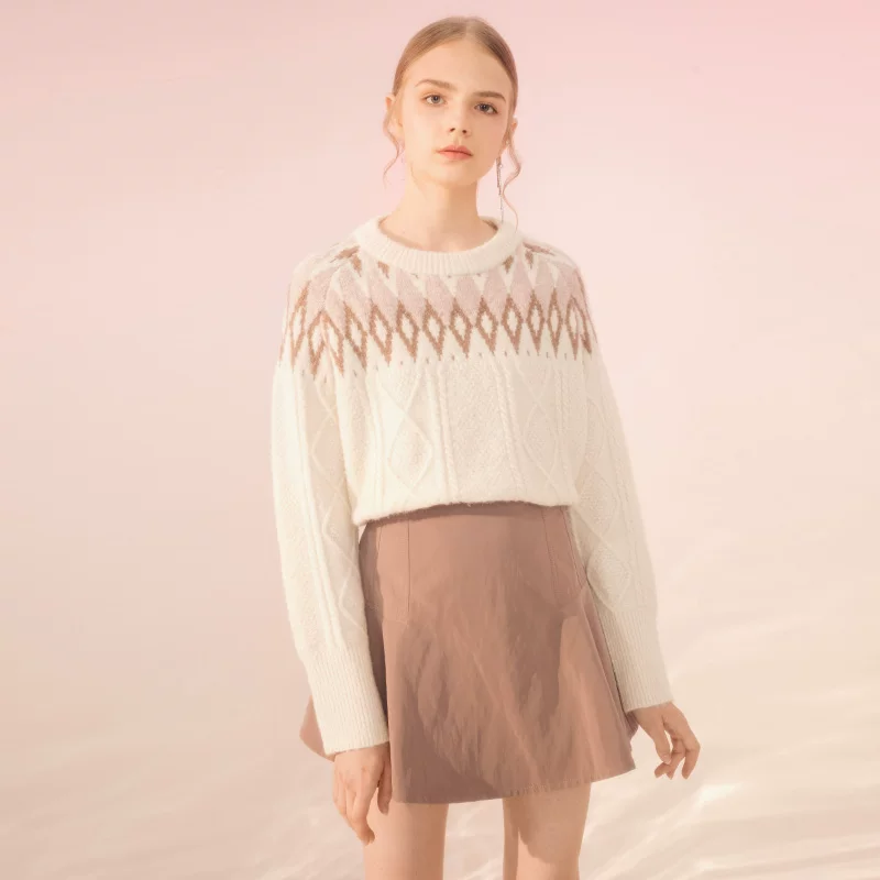 Tangli Women Winter New Rice Beige Retro Jacquard Áo len Áo len đáy Áo len Phụ nữ hàng đầu - Áo / áo thun
