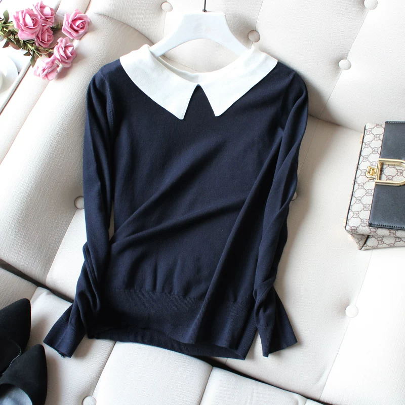 Áo len dệt kim nữ mùa xuân 2020 đa năng lỏng lẻo Hàn Quốc áo sơ mi dài tay búp bê cổ áo mùa xuân áo len mỏng - Vòng cổ áo len