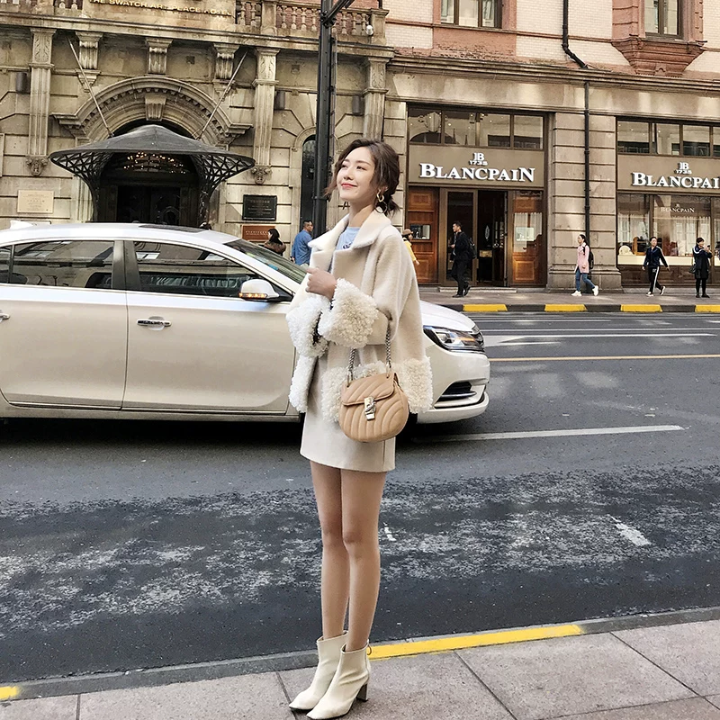 Bạn bè sang trọng thỏ giả xuống áo khoác cardigan áo len dệt kim không xơ Jennie cùng màu 3 - Áo len cổ chữ V